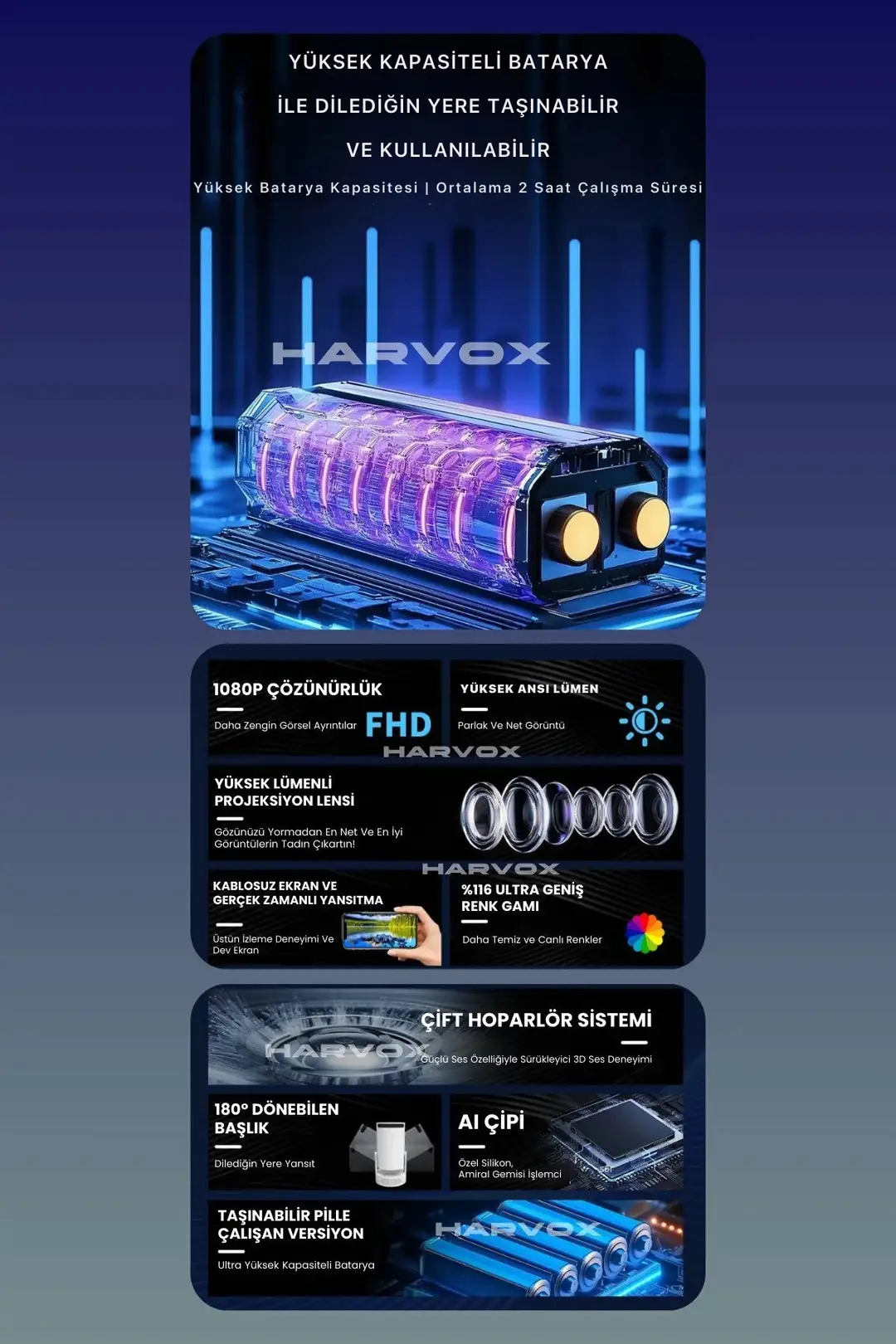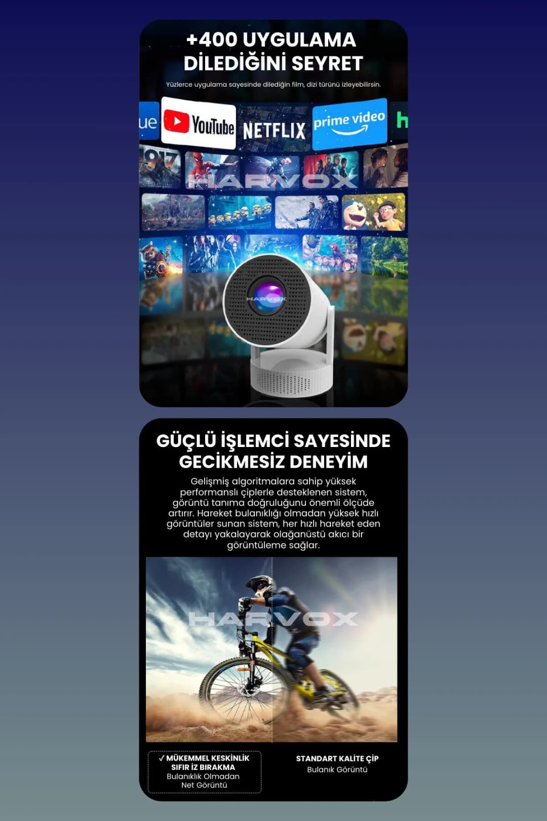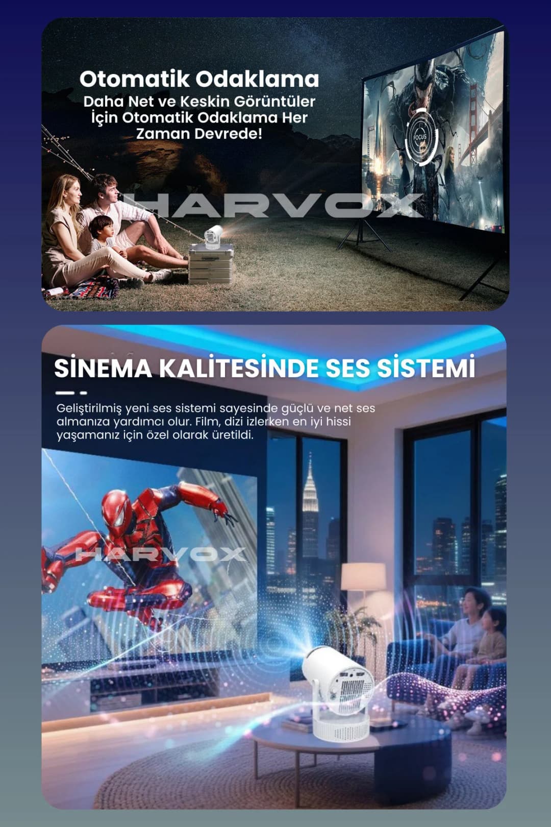 🎥 Sinema Salonu Keyfi: 130 inçe kadar Ekran Yansıtma