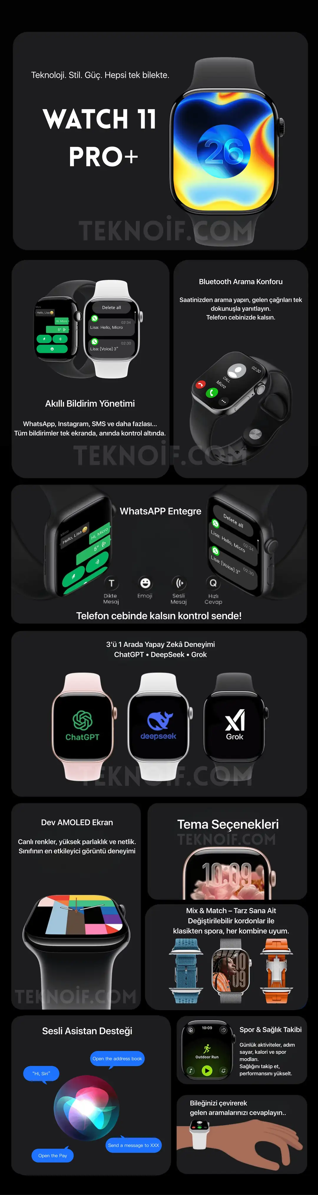 ⌚️2.08 inç HD Ekran 💬Whatsapp Bağlantısı 📱 468*548 Pixel Ekran Çözünürlüğü 💾 2 GB Hafıza 🎧️ Kulaklık Bağlayabilme ↕️ 46 mm Kasa Çapı 🔋 420 Mah Batarya 🛜 Bluetooth 5.3 ile Hızlı ve Sorunsuz Bağlantı ⚡ 90Hz Ekran Yenileme Hızı ve Gelişmiş İşlemci