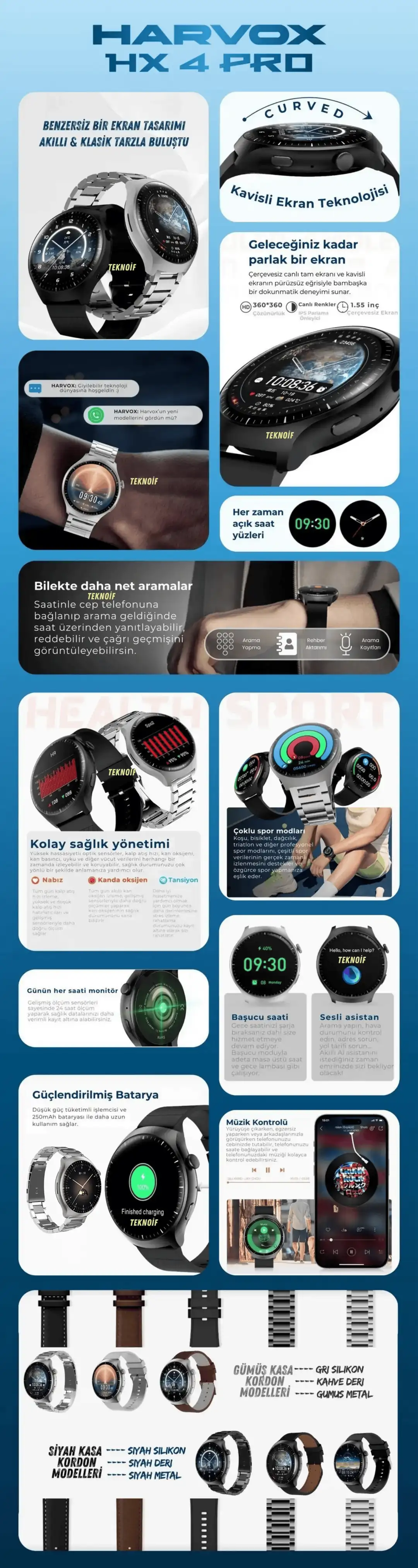 Sağlık Takip Sensörleri Nabız, tansiyon ve kalori takibi (sadece referans amaçlı, tıbbi cihaz değildir).